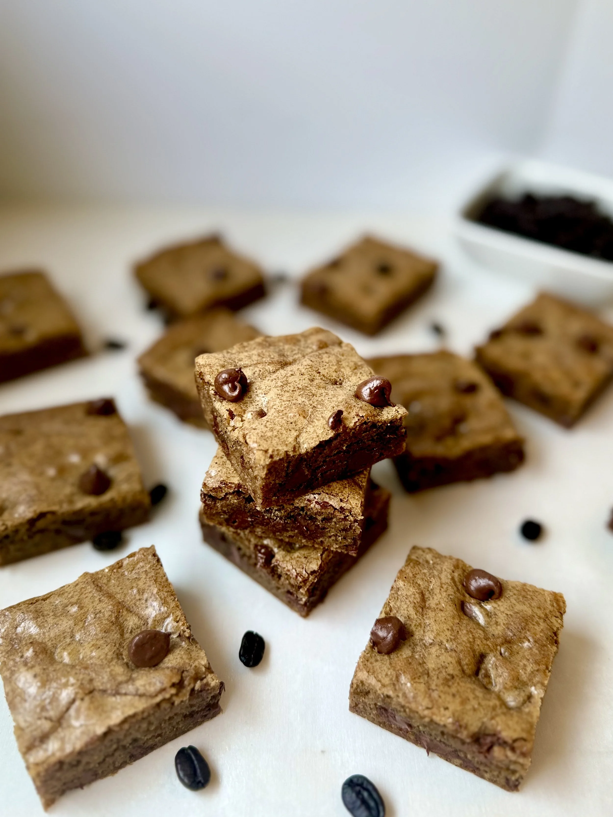 I developed this recipe while thinking about a few of my friends and how they love espresso. Whether it’s a nice shot of espresso, an espresso martini, or tiramisu. I simply followed my Brown Butter Chocolate Chip Blondie recipe and added some espresso powder to give it the best flavor boost.