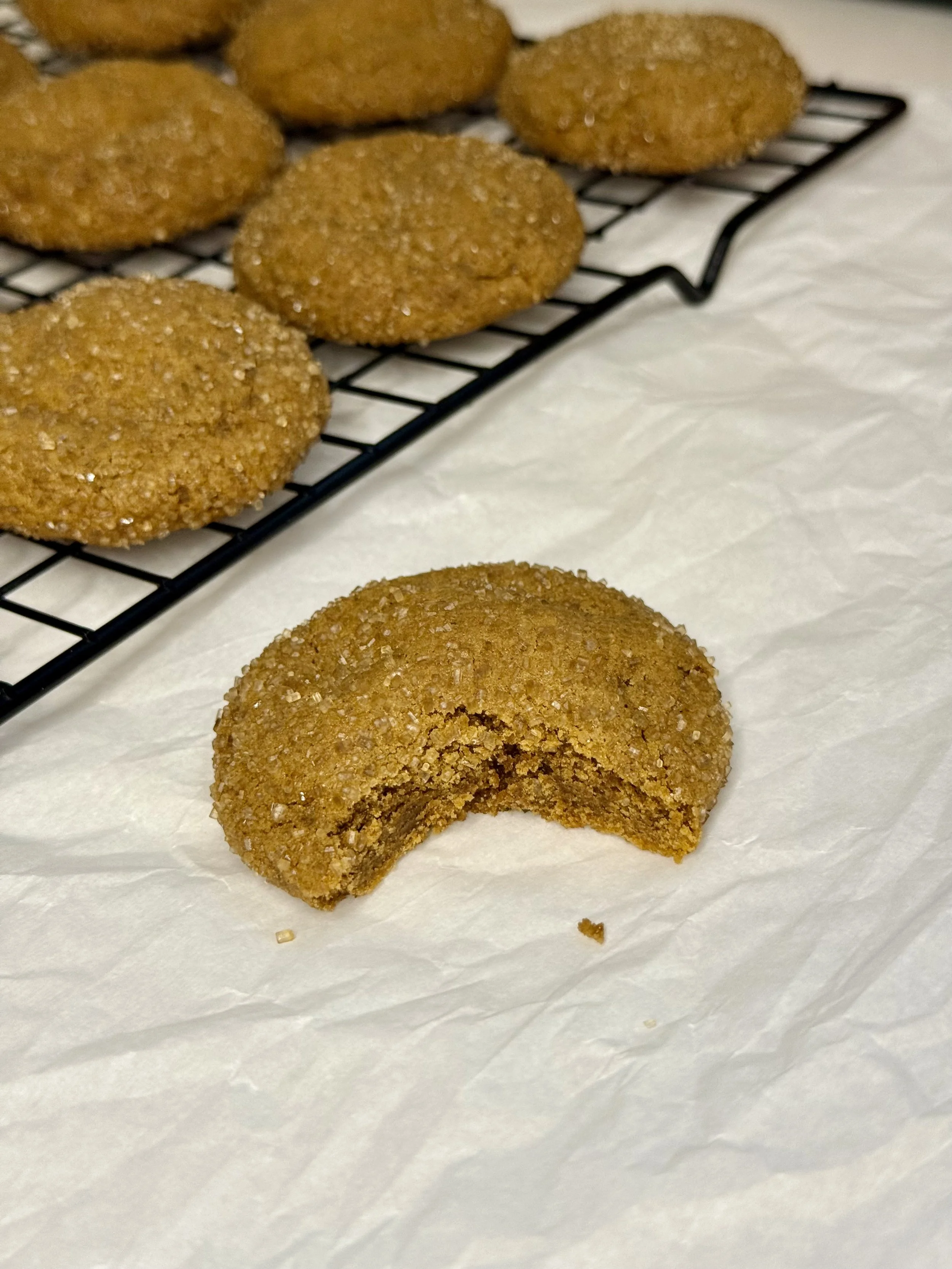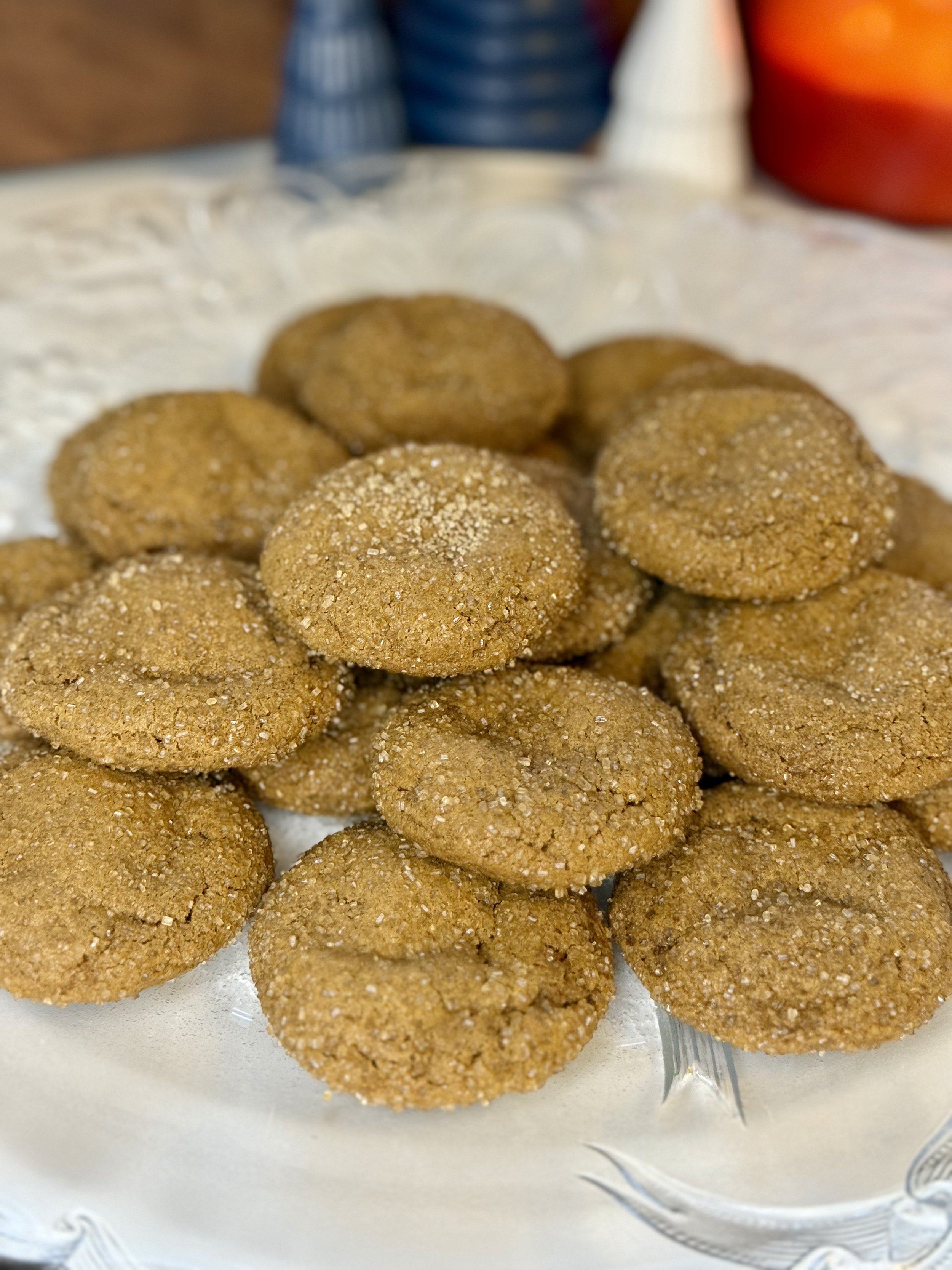 Nothing says cozy like the smell of warm gingerbread cookies baking in the oven. It’s finally that time of year when baking cookies is so magical. I love putting a Christmas movie on in the background and getting right to baking. These chewy gingerbread cookies are packed with classic holiday spices — ginger, cinnamon, cloves, and nutmeg- and have that soft, melt-in-your-mouth texture that makes them impossible to resist.