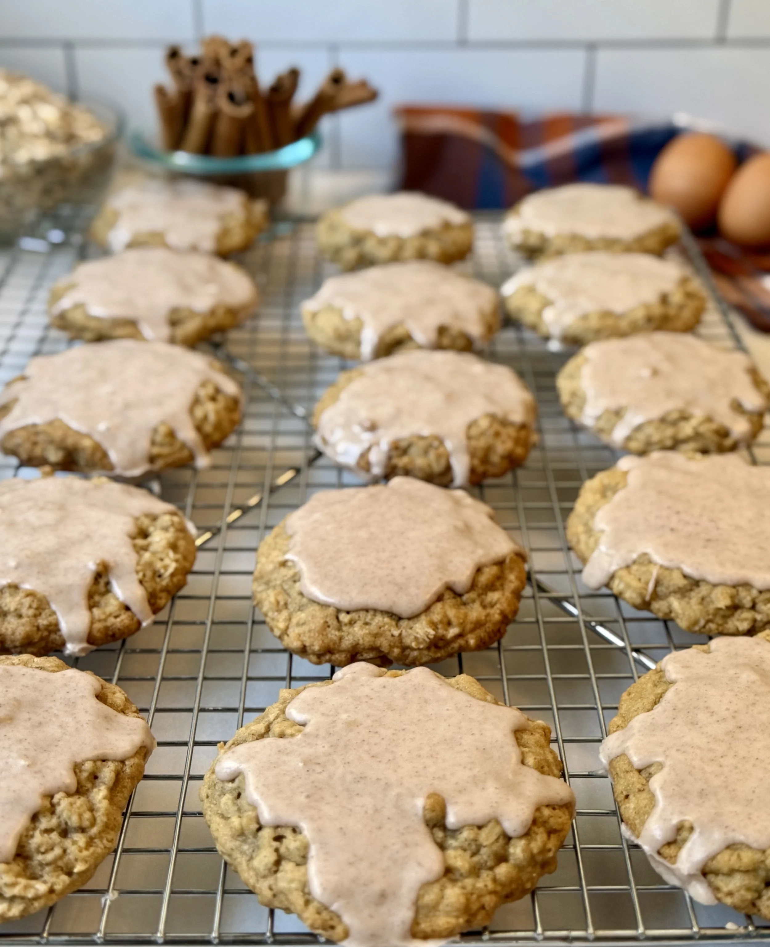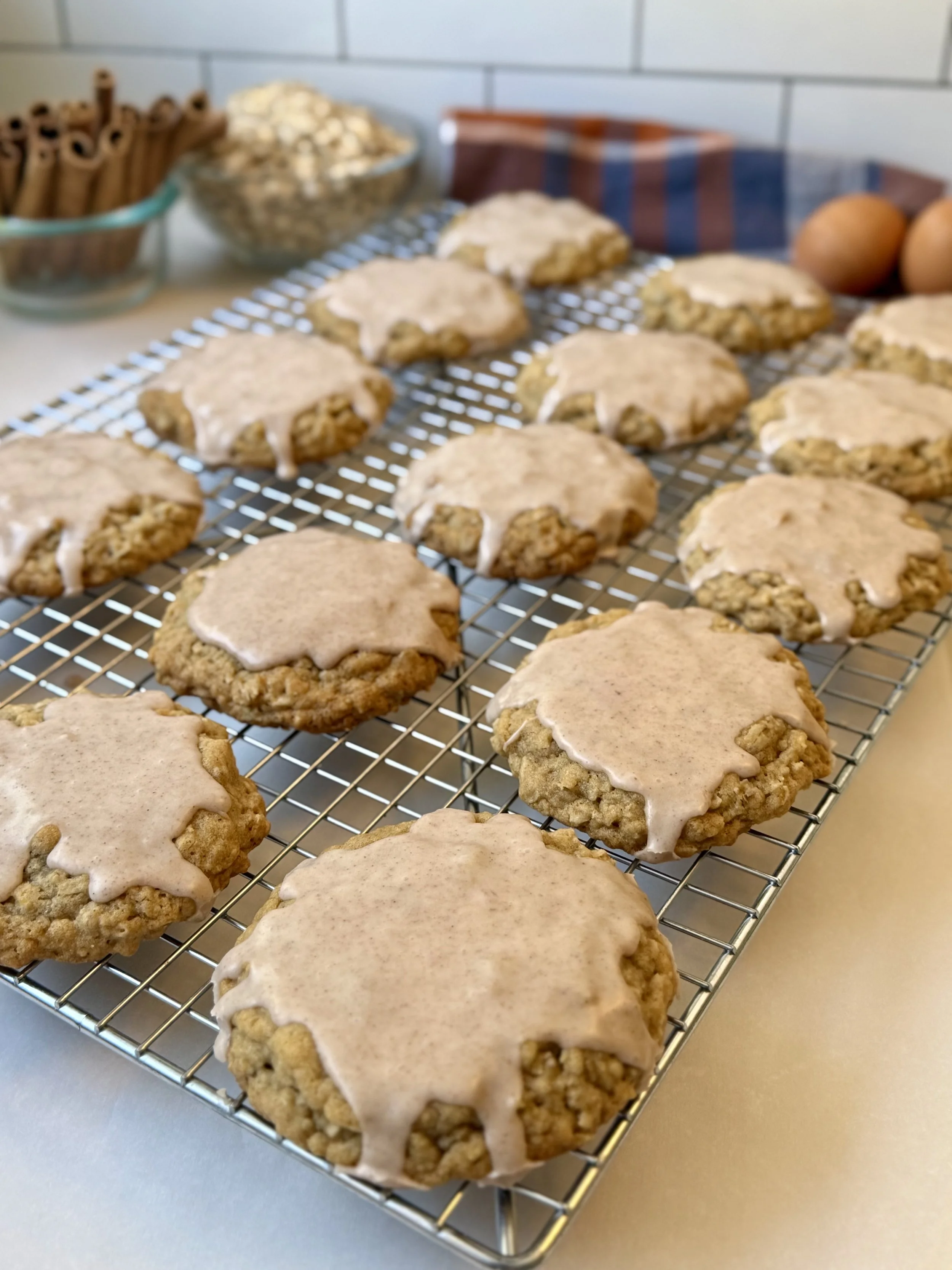 Soft Iced Oatmeal Cookies with Cinnamon Glaze