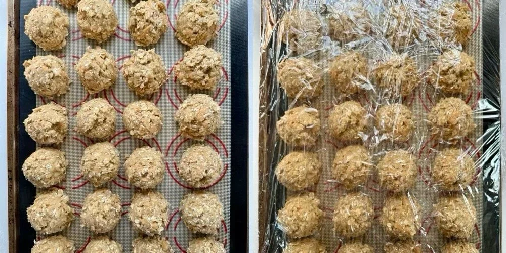Use a large cookie scoop to portion dough onto prepared sheets. Cover with plastic wrap and refrigerate for 30–60 minutes.Bake