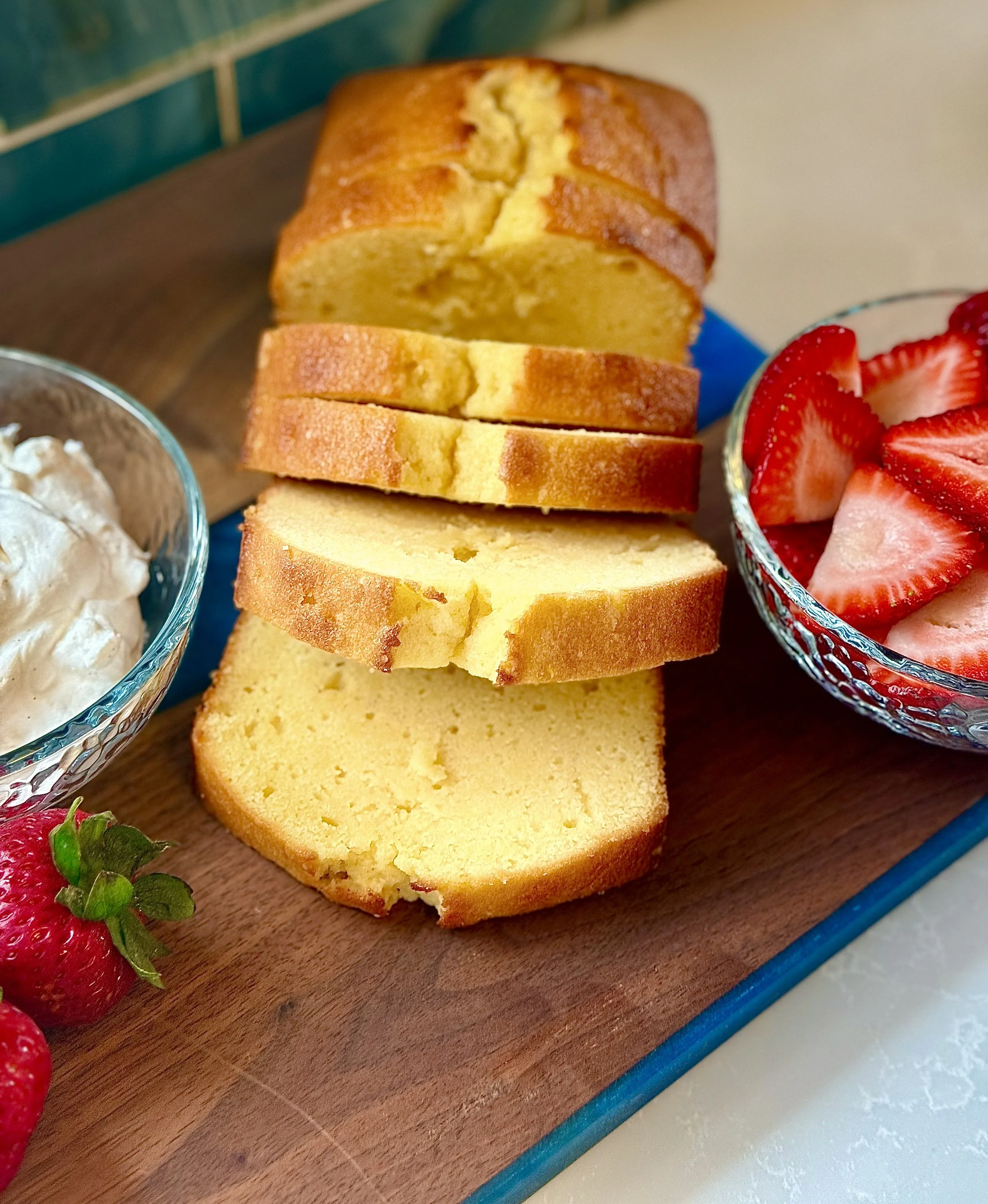 This pound cake is the buttery, golden queen of classic cakes—dense, dreamy, and deliciously simple. With a rich crumb and just the right sweetness. Its classic simplicity makes it perfect on its own or as a base for toppings like fresh fruit, whipped cream, or glazes.